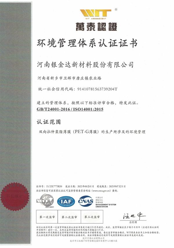 環境管理體系認證證書
