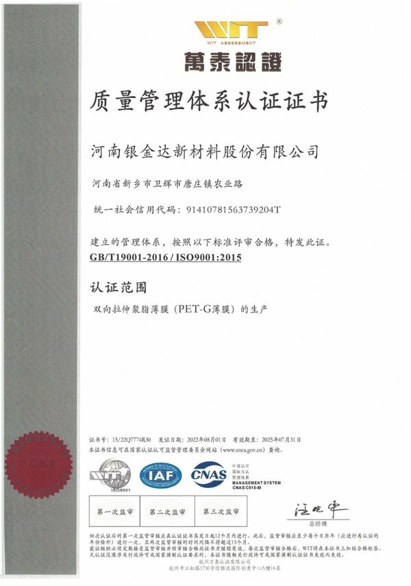 質量管理體系認證證書
