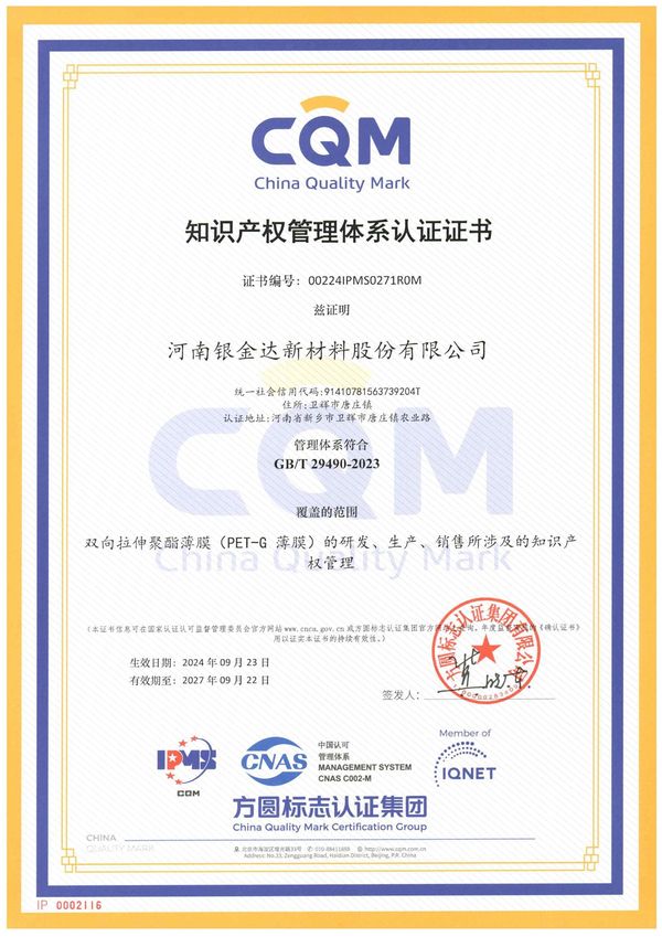 知識產權管理體系認證證書