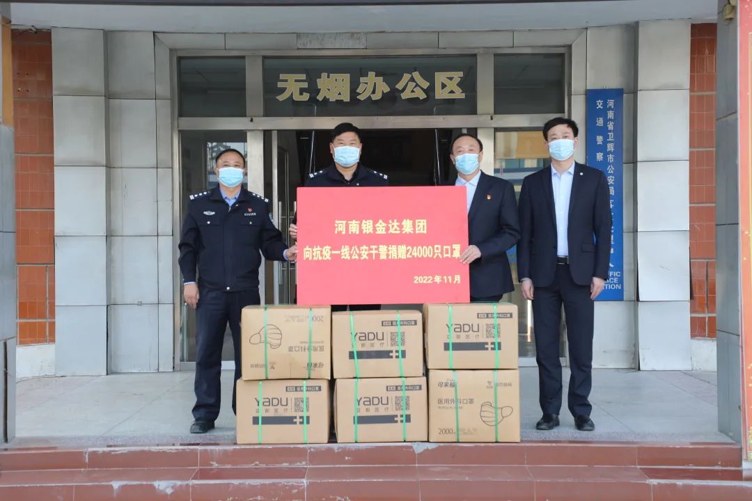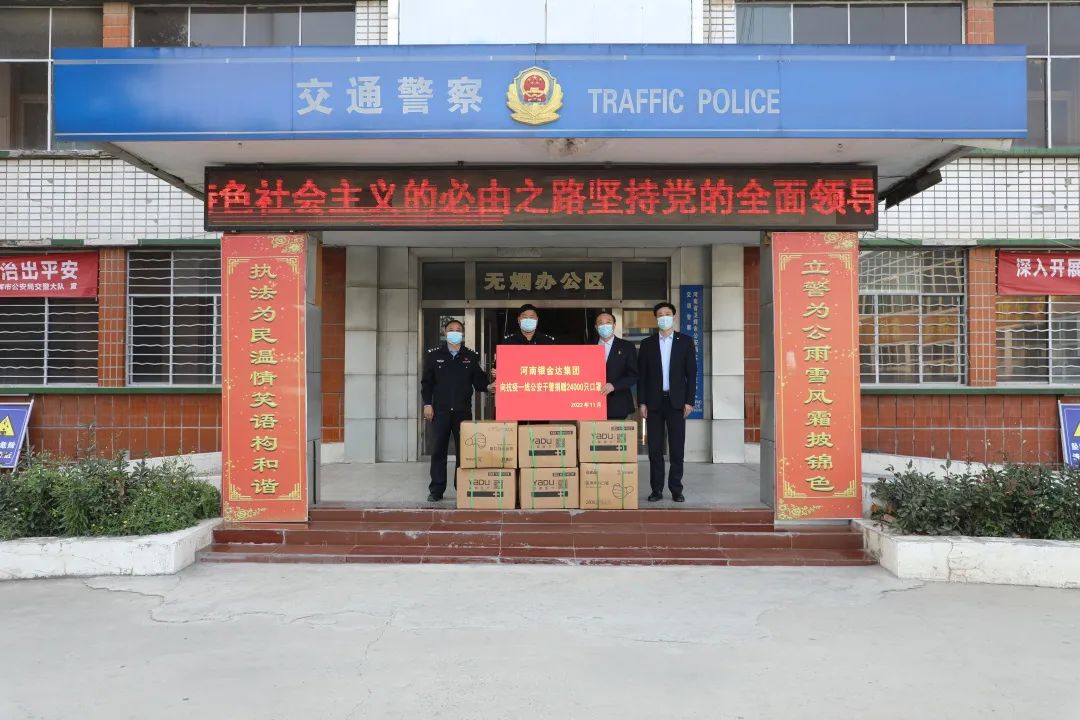 在當(dāng)前疫情嚴(yán)峻復(fù)雜的形勢(shì)下,公安干警不懼風(fēng)險(xiǎn)英勇戰(zhàn)斗在疫防一線,為守護(hù)一方平安和抗擊疫情作出了重要貢獻(xiàn)。銀金達(dá)集團(tuán)黨委書記、董事長(zhǎng)閆銀鳳為助力公安干警抗擊疫情,委托集團(tuán)黨委副書記、工會(huì)主席楊鳳瑞和彩印公司副總經(jīng)理劉廣斌到衛(wèi)輝市公安局、衛(wèi)輝市交警大隊(duì)慰問,并捐獻(xiàn)防疫口罩2.4萬只,表達(dá)銀金達(dá)干部職工的熱誠(chéng)問候。