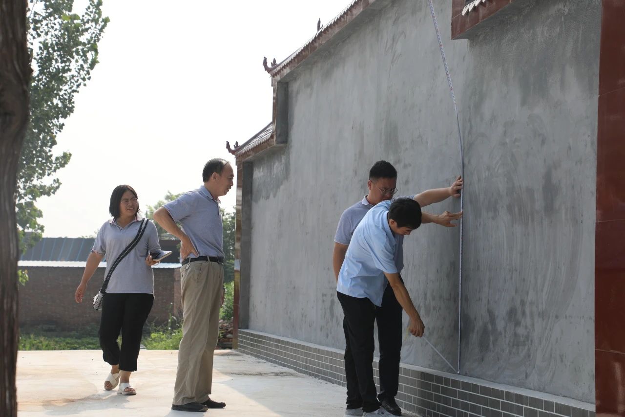 在王二莊村文化墻和文化活動廣場,楊鳳瑞一行仔細查看了項目建設情況,已建成文化廣場面積662平方米,文化墻立體面積45平方米,楊鳳瑞對項目建設質(zhì)量表示滿意,并對兩個場地的后續(xù)建設方案進行討論,經(jīng)現(xiàn)場測量,確定了文化墻和廣場背景墻的宣傳設計規(guī)劃。