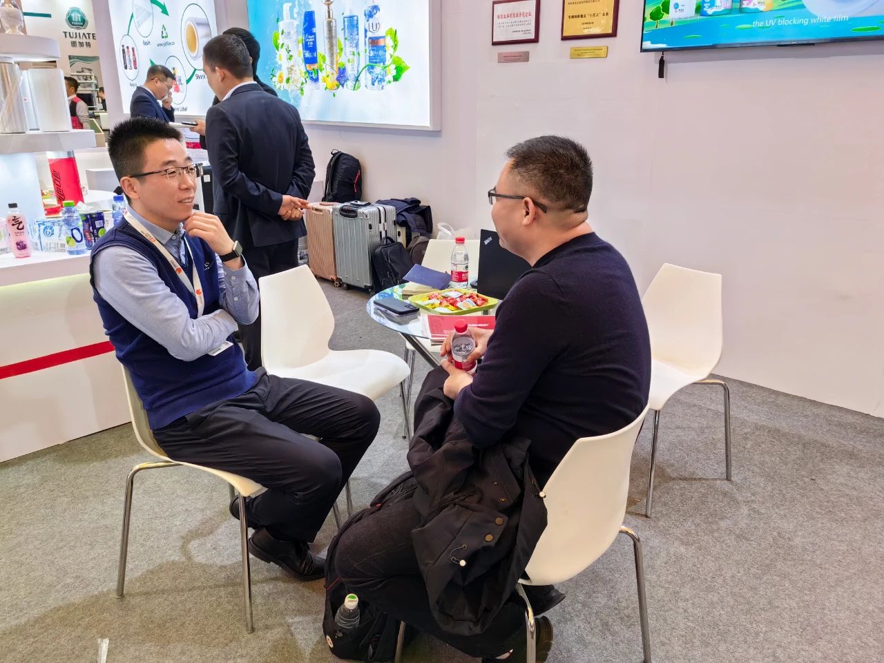 銀金達展臺位于E2館J55展位,展區設計簡潔大方、突出PETG產業鏈主題,在重點推介薄膜業務板塊的同時、設置了PETG切片及銀金達彩印產品展示專區,全面展示銀金達PETG產業鏈風采。展會期間,除國內市場的眾多新老客戶外,銀金達與土耳其、墨西哥、意大利等國家的老客戶,以及來自泰國、巴基斯坦、以色列、也門、俄羅斯、白俄羅斯、多米尼加、哥倫比亞等國家的新客戶進行了友好洽談,充分交流市場信息,深入溝通業務合作細節。