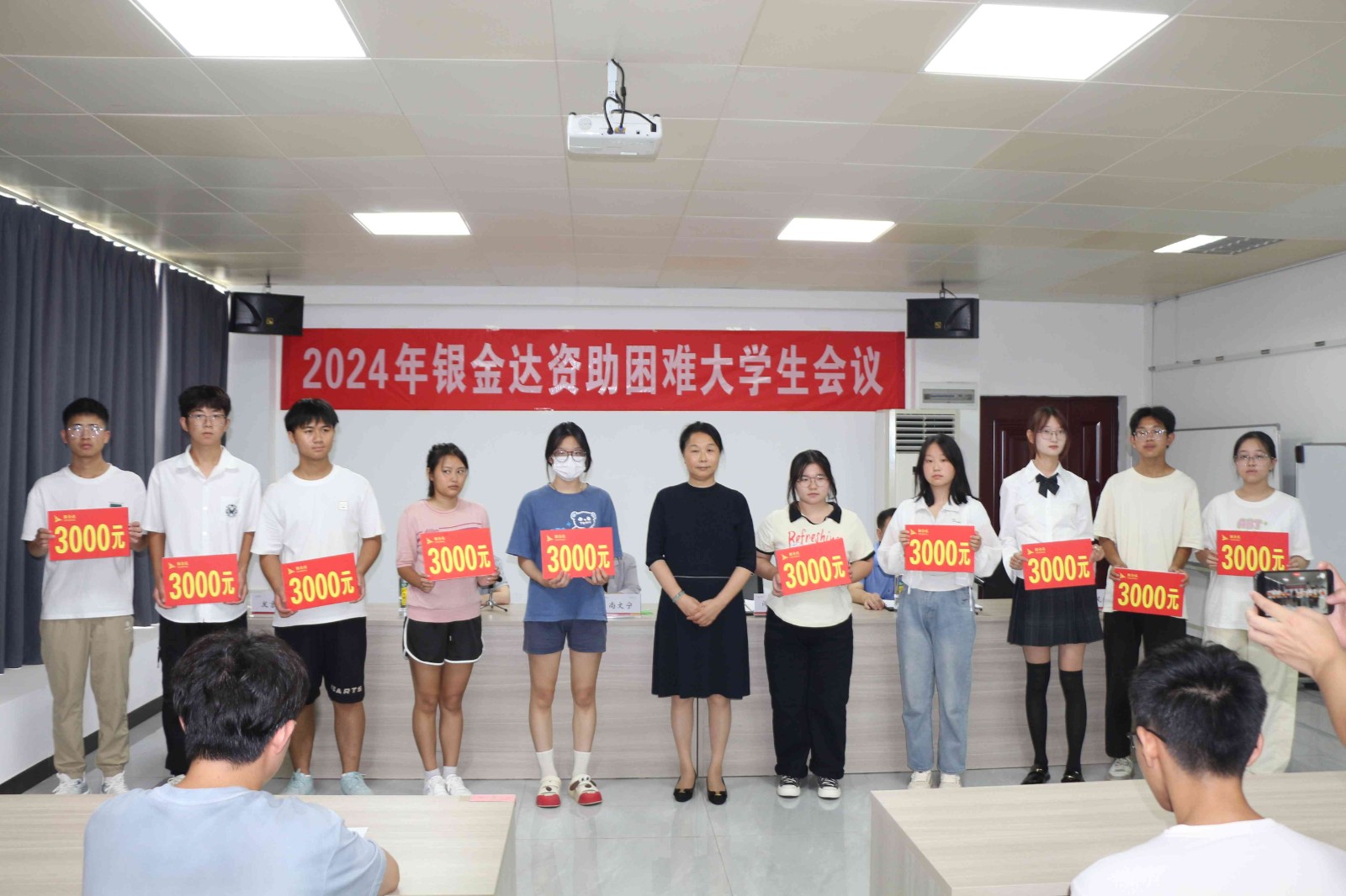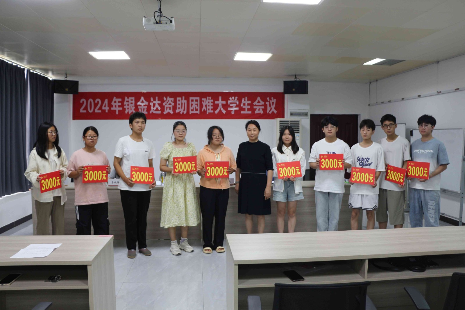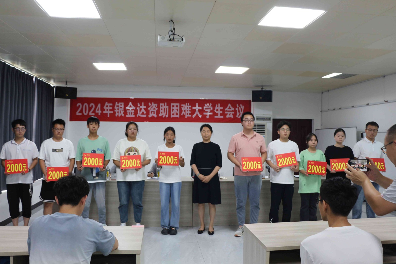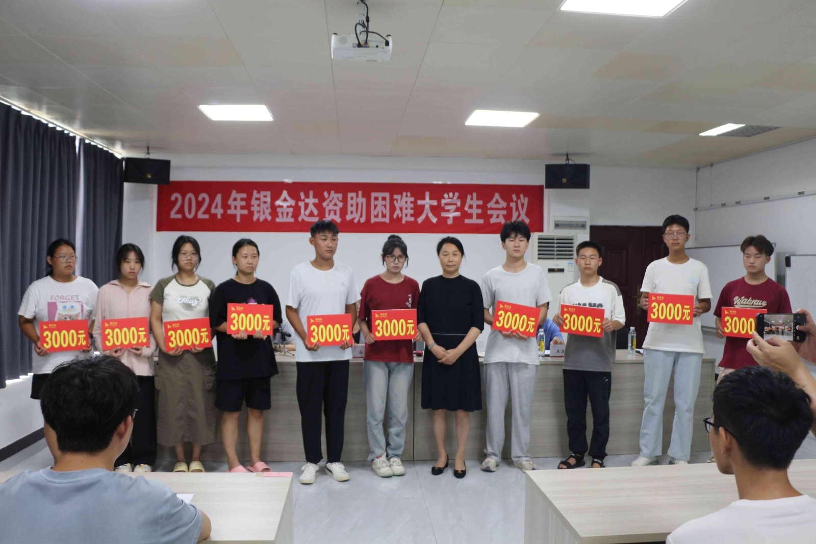 銀金達(dá)集團(tuán)負(fù)責(zé)同志對(duì)本次資助活動(dòng)開(kāi)展情況向與會(huì)人員進(jìn)行了介紹。銀金達(dá)始終把履行社會(huì)責(zé)任作為企業(yè)的光榮使命,自2006年起,連續(xù)19年資助困難大學(xué)生,今年發(fā)放資助金18.3萬(wàn)元,資助學(xué)生68名。6月初即發(fā)布資助困難大學(xué)生公告,7月中旬,集團(tuán)黨辦通過(guò)各鄉(xiāng)鎮(zhèn)基層黨組織群、駐村工作群及民政局等,共收到困難大學(xué)生19人,孤兒及事實(shí)孤兒大學(xué)生10人,通過(guò)內(nèi)部調(diào)查摸底,收到職工子女大學(xué)生21人,通過(guò)幫扶村,收到幫扶村大學(xué)生17人,然后對(duì)各種身份大學(xué)生進(jìn)行核查驗(yàn)證。共收到需要資助的大學(xué)生68人,對(duì)考入北京大學(xué)的大學(xué)生獎(jiǎng)勵(lì)1人。2024年比上年增加資助金2萬(wàn)元。